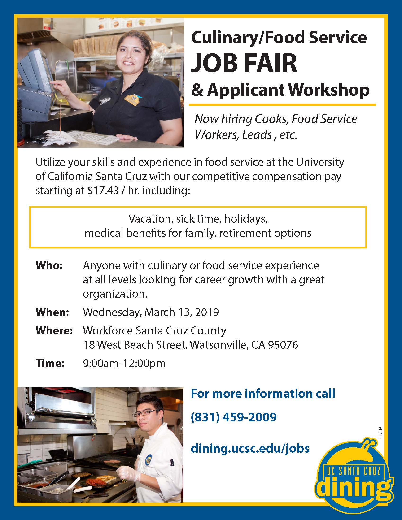 The program pays half of the students wages through financial aid and the rest is paid by the employer. Work-Study is a part of your financial aid package. Working at UC Santa Cruz Dining provides students with real-world job skills and life experience.